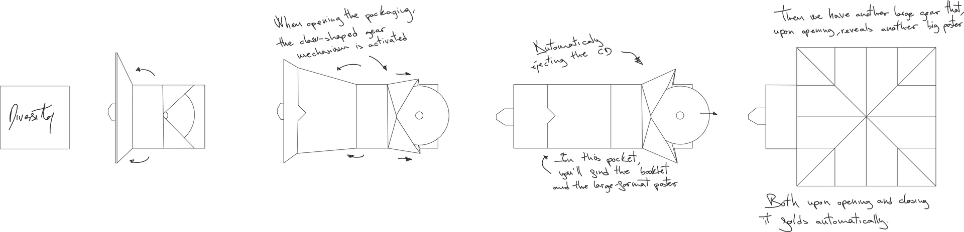 This exceptional and distinctive design incorporates a pop-up mechanism in the shape of a claw, securing the CD and mechanically releasing it upon opening. Furthermore, it surprises with a second fold-out that reveals a large poster that opens and closes automatically.